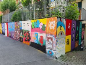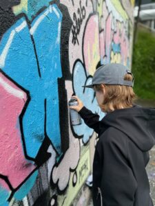Graffiti-Workshops: Perfekt für kreative Auszeiten – ob als Teil eines Kindergeburtstags, Einzelunterricht oder in der Gruppe. Wir unterstützen Sie bei der Realisierung persönlicher Projekte, von Auftragsarbeiten auf Ihrem Garagentor, im Wohnzimmer, auf Ihrem Camper oder im Kinderzimmer. Der Workshop beginnt mit einer Einführung in die Welt des Graffitis, gefolgt von der Erarbeitung eines Entwurfs und dessen Umsetzung auf einer grossen Wandfläche. Unsere erfahrenen Kursleiter begleiten Sie von den ersten Skizzen bis hin zur vollständigen Ausführung eines eigenen Graffitis, wobei Sie verschiedene Techniken und die notwendige Ausrüstung kennenlernen.