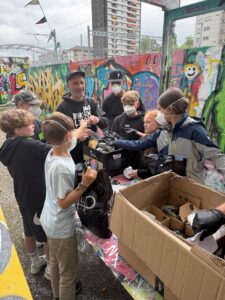 In 2 bis 4 Stunden lernen die Kinder Techniken des Graffitis kennen, erarbeiten eigene Designs und setzen diese unter professioneller Anleitung um. Schutzmaterial wird selbstverständlich bereitgestellt.