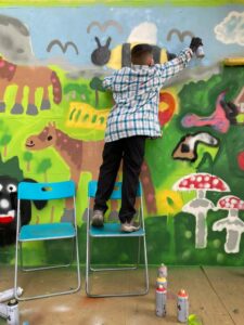 Unser Graffiti Workshop fördert nicht nur die künstlerische Kreativität, sondern auch Teamwork und Selbstausdruck. Die TeilnehmerInnen werden ermutigt, ihre Persönlichkeit und ihre Ideen durch Graffiti auszudrücken und dabei ihre eigenen Grenzen zu überschreiten.